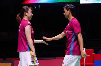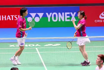 2回戦を突破しVサインの志田(右)・松山組(撮影・光山 貴大)