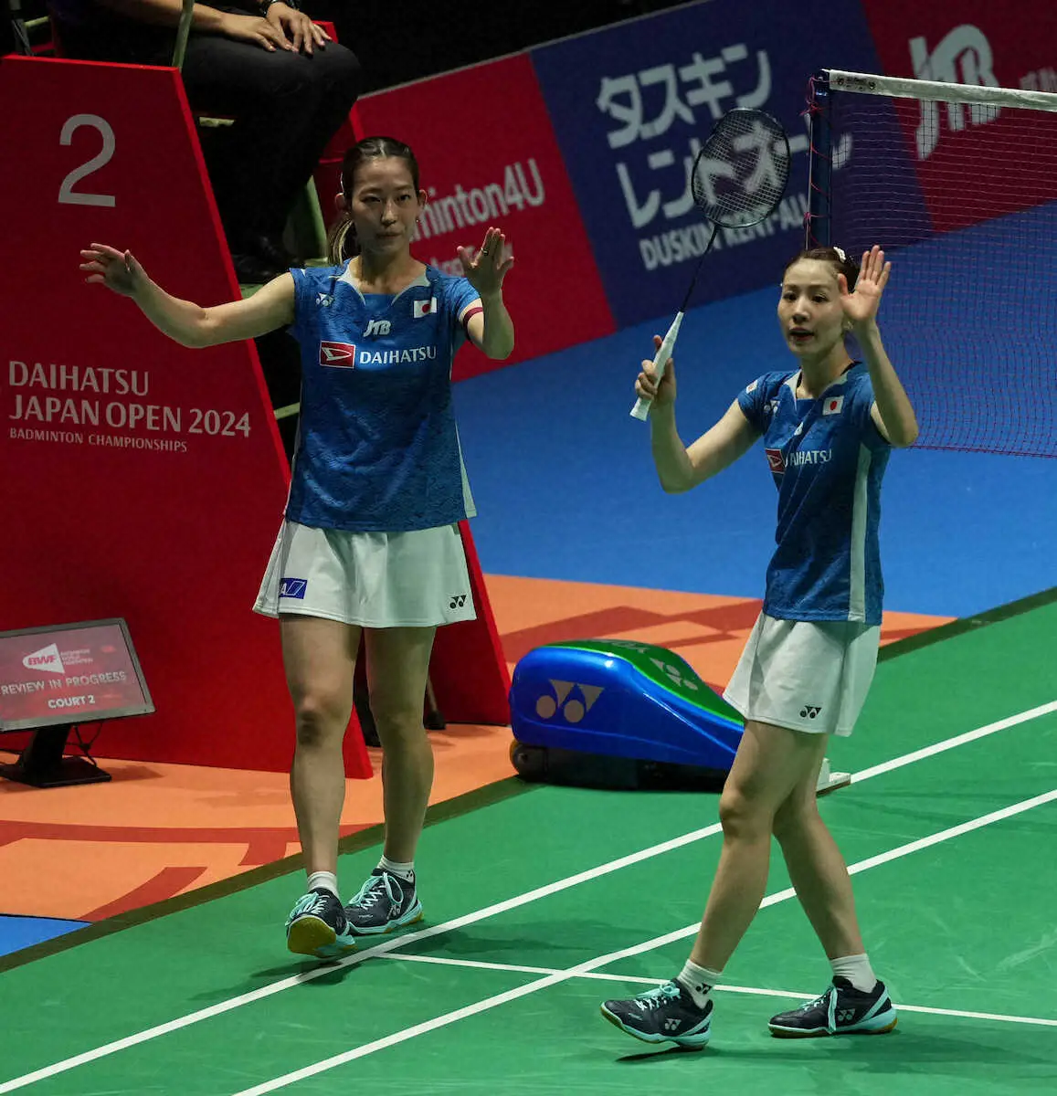 バドミントンのジャパンオープンは23日に横浜アリーナで混合ダブルスの準々決勝が行われ、パリ五輪で銅メダルを獲得した志田千陽、松山奈未組(再春館製薬所)は、岩永鈴、中西貴映組(BIPROGY)との日本勢対決に1―2で逆転負けし4強入りを逃した。