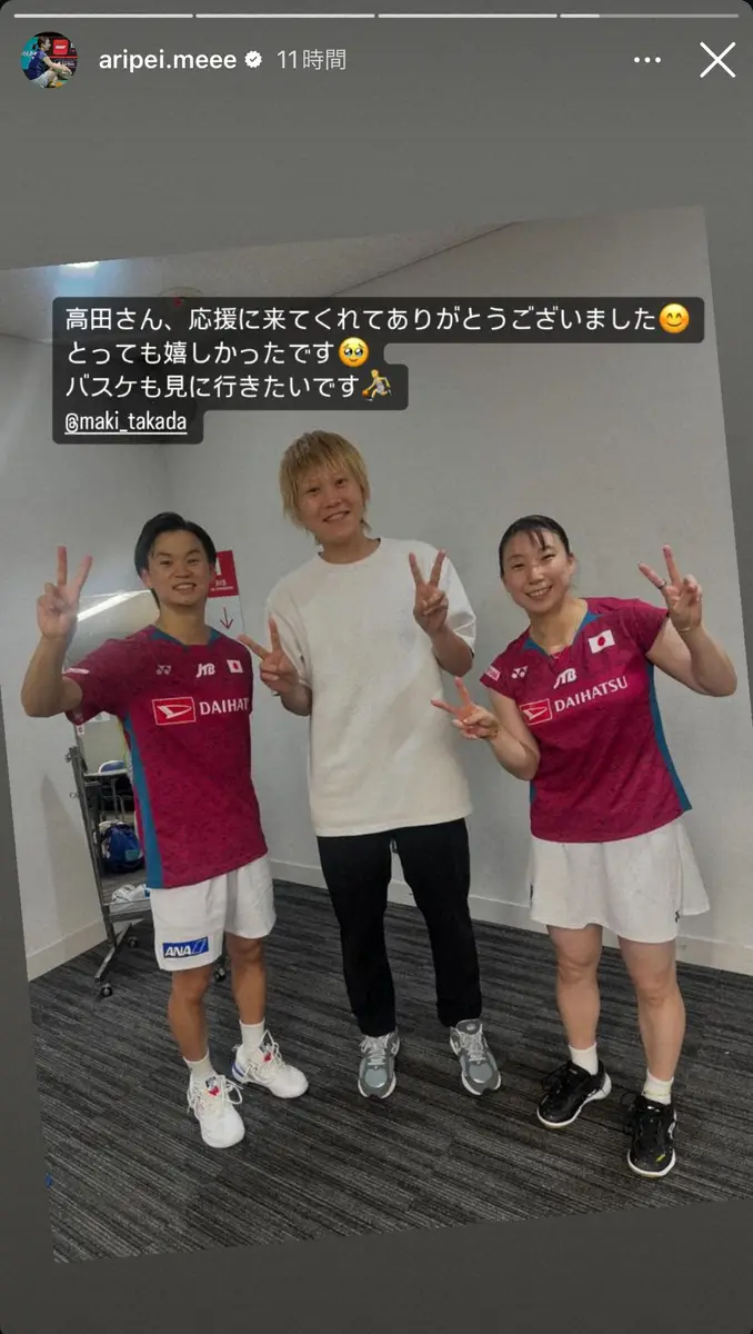 また高田も25日までに自身のインスタグラムを更新。「ワタガシがめちゃくちゃ格好良かった おつかれさま バドミントン面白い #ワタガシなのに甘くないスマッシュ」と記し、現地での応援様子を投稿していた。