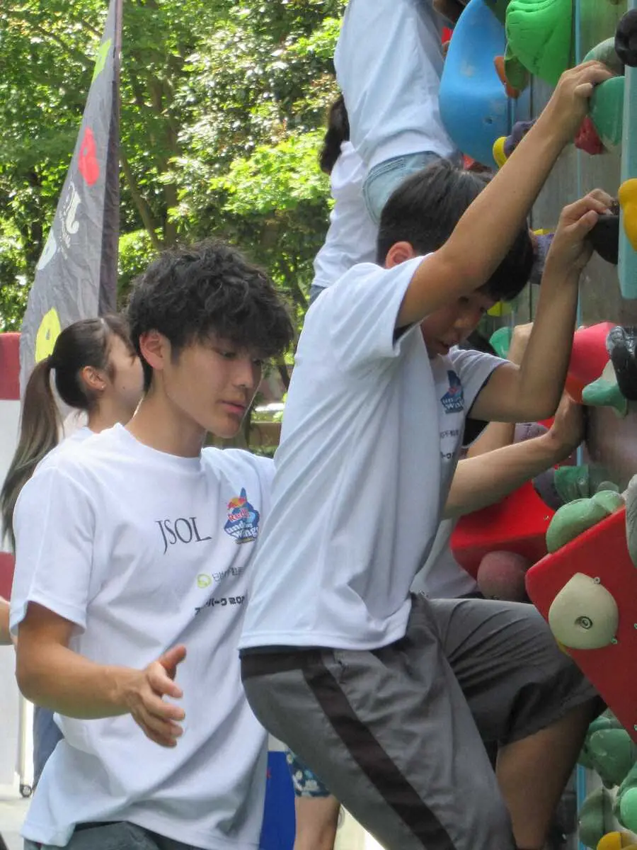 スポーツクライミング複合でパリ五輪銀メダリストの安楽宙斗(17=JSOL)が25日、都内で行われたボルダリングの体験イベントに参加した。