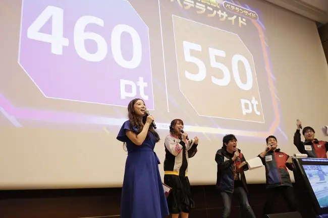 結果発表にはGGGP2024スペシャルサポーターの時田愛梨が登壇。後半に新鋭サイドが盛り返したことで合計ポイントは接戦となったが、会場内応援企画で86件の応援コメントが寄せられたベテランサイドが50ポイントを獲得。結果、新鋭サイド460ポイント、ベテランサイド550ポイントで、後夜祭の勝者はベテランサイドとなった。
