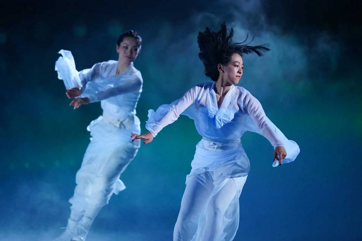 06年トリノ五輪金メダルの荒川静香さん(42)がプロデュースするショーで今年で18回目。初出演する10年バンクーバー五輪銀メダルの浅田真央さん(33)が荒川さんらとのコラボナンバーや、シーアのシャンデリアの曲に乗ったソロで会場を沸かせた。