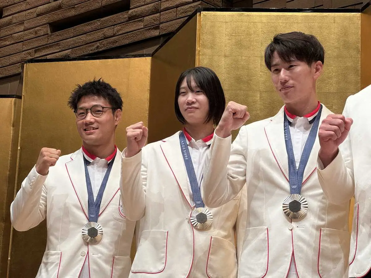 パリ五輪の近代五種男子で日本勢初メダルとなる銀メダルを獲得した佐藤大宗(自衛隊)が31日、東京都内で行われた自衛隊体育学校主催の報告会に出席。約230人の関係者を前に「皆さんの熱い応援のおかげで獲得できた。感謝申し上げる」と頭を下げて拍手を浴びた。