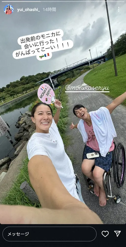 21年東京五輪の競泳女子個人メドレーで200メートルと400メートルの2冠に輝き、パリ五輪にも出場した大橋悠依(28=イトマン東進)が2日までに自身のインスタグラムを更新。パリパラリンピックカヌー女子日本代表の瀬立モニカ(26)との2ショットを披露し、エールを送った。