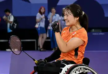 バドミントンの女子シングルス車いすWH1決勝が行われ、21年東京大会優勝の里見紗李奈(26=NTT都市開発)が同準優勝のスジラット・プッカム(38=タイ)を2-1で破り、2連覇を達成した。同WH2の3位決定戦では山崎悠麻(36=NTT都市開発)が東京大会銅のイラリア・レングリ(24=スイス)に敗れ、4位だった。