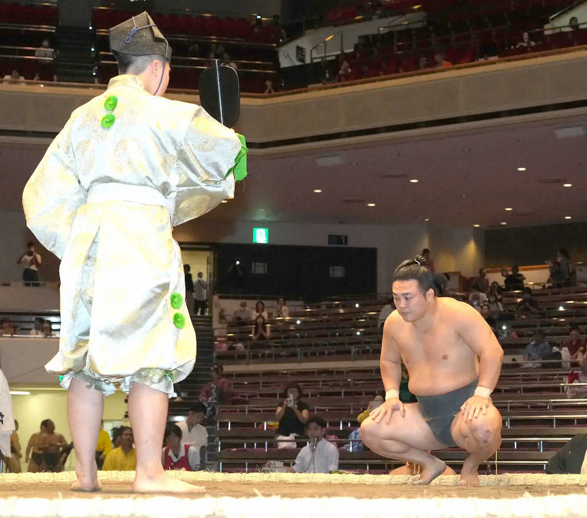 国技館の土俵に上がるのは、十両だった昨年夏場所9日目以来で、国技館での白星は昨年初場所13日目の幕内(当時)水戸龍戦以来、実に597日ぶり。この日は午前10時半過ぎという早い時間からファンの大声援を浴びた。「国技館にしかない緊張感や雰囲気がある」と少し硬くなったようだが、相撲には全く影響せず完勝だった。