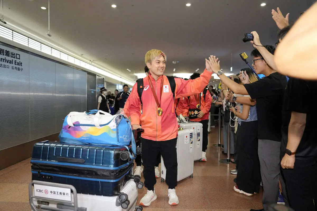 パリパラ金・小田凱人“凱旋”に10台超えるテレビカメラ、ファンが出迎え祝福 笑顔でメダルかむパフォも