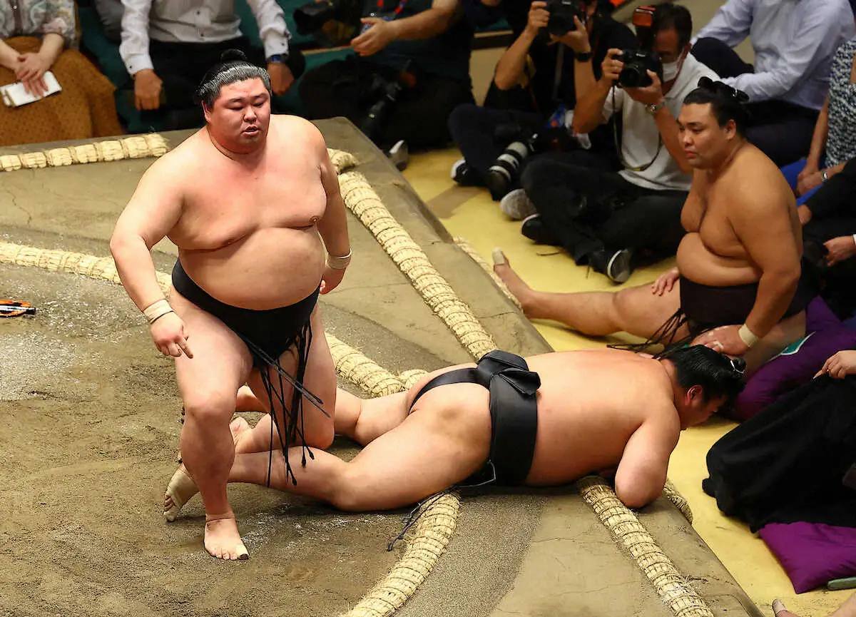 西前頭3枚目の若元春(30=荒汐部屋)を左四つで押し込んだ。ところが、土俵際から逆に押し返されたが、浅く差した左を強引にねじ込んでのすくい投げ。「捨て身だった。土俵際まで持って行ったときにこのままいくか迷った。(最初に)押し込んでいたので、振り抜くスペースができた」と逆転勝ちの要因を語った。