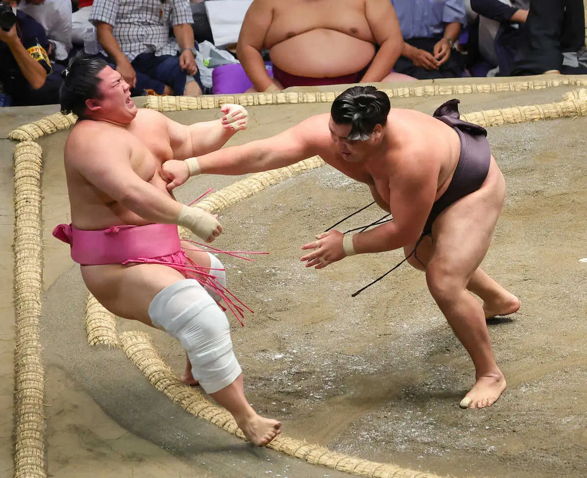 <大相撲秋場所8日目>御嶽海(右)を押し出しで下す大の里(撮影・藤山 由理) Photo by スポニチ 大の里 無傷の8連勝でただ1人中日勝ち越し! 追う霧島は宇良を押し倒し1… ギャラリーで見る この記事のフォト 2024年09月15日の画像一覧 もっと見る 2024年09月15日の画像をもっと見る