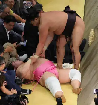 西前頭9枚目・欧勝馬と西前頭7枚目・美ノ海の2敗対決は欧勝馬がはたき込みで下し、6勝目を挙げた。