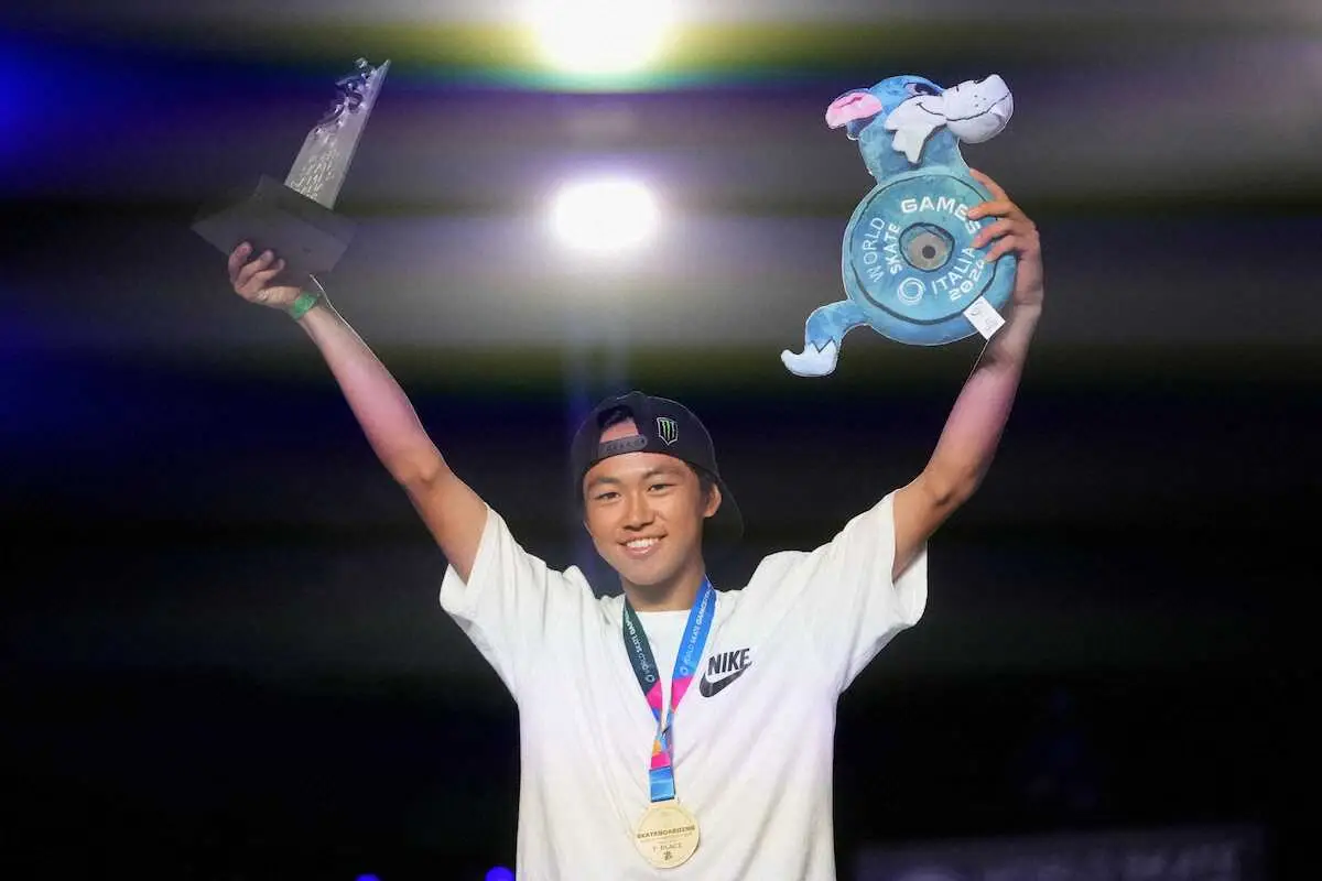 14日に決勝が行われ、男子は佐々木音憧(とあ、17)が合計276・64点で同種目最年少で初優勝を果たした。日本勢では21年の堀米雄斗(三井住友DSアセットマネジメント)、昨年の白井空良(ムラサキスポーツ)に続く3人目の頂点。パリ五輪で2連覇した堀米や白井は今大会出場しなかった。