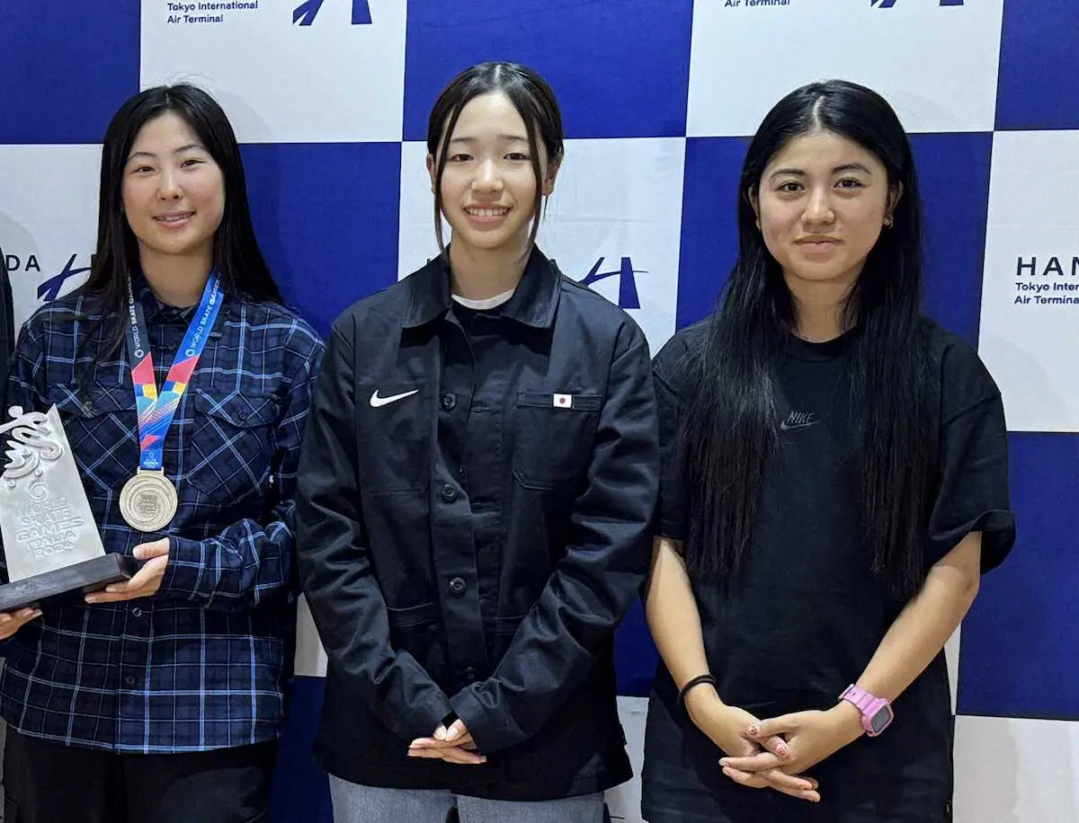 ローマで開催されたスケートボード・ストリートの世界選手権を終えた日本選手が17日、羽田空港に帰国。パリ五輪金メダルで今大会では4位だった14歳の吉沢恋(ACT SB STORE)は「(ローマは)去年大きなケガをした大会(開催地)だったので、そこを克服できたのは収穫」と振り返った。