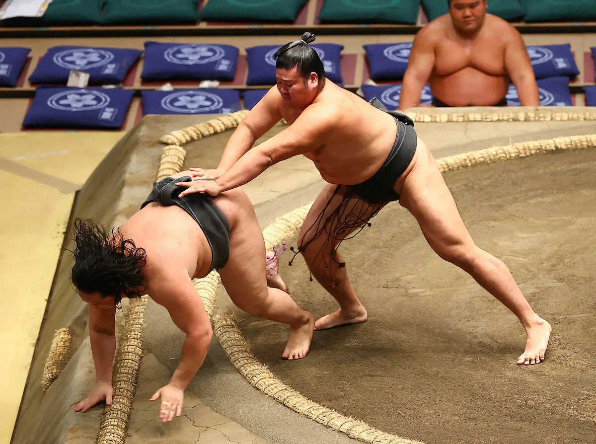 もう一つの幕下全勝対決は、西55枚目の朝興貴(33=高砂部屋)が勝ってこちらも6連勝。得意の突き押しで一気に前に出て夢道鵬(23=大嶽部屋)を押し倒した。過去に三段目優勝2回、序二段優勝1回の経験を持つベテランが、自身4度目の各段優勝に王手をかけた。13日目には、羽出山と朝興貴による幕下優勝を懸けた全勝対決が組まれることが予想される。