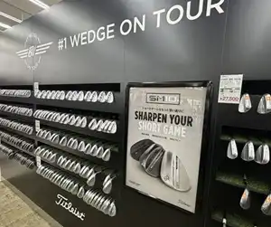 ギアコーナー、メーカーブースなど全てが充実した大型店舗で、ウエッジコーナーはクラブが横並びに展示され豊富な品ぞろえ。試打室は3室あり、最新の測定機器で充実のフィッティングが可能。試打会やグローブフィッティング会など、今後も店頭イベントが盛りだくさんだ。