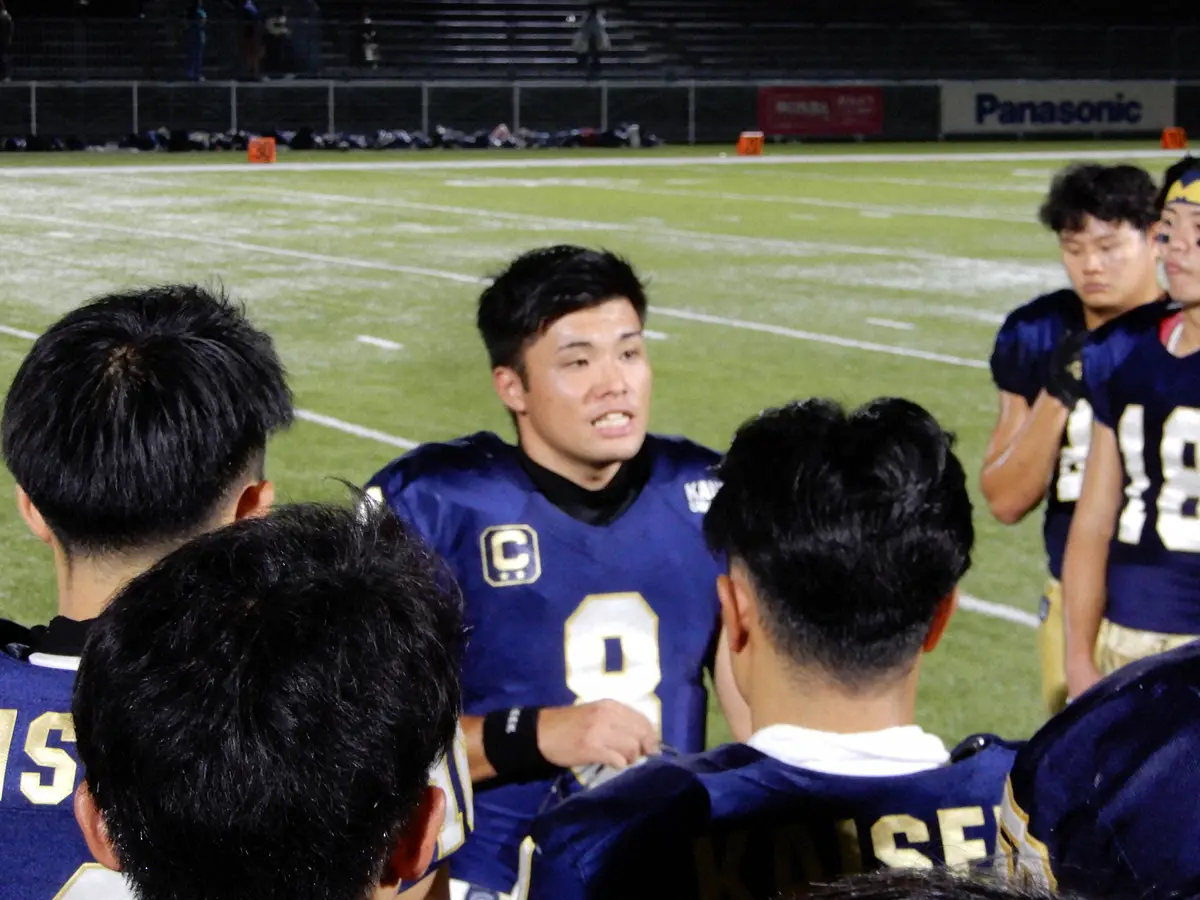 ただ、欠場したQB須田啓太主将(4年)の表情は浮かない。「第1Qから21、11、7…と明らかに失速している」と指摘した上で、「関学大や立命大なら、もっと点数を取っていたはず。これがチームの現状だとみんな分かったはず」と続けた。