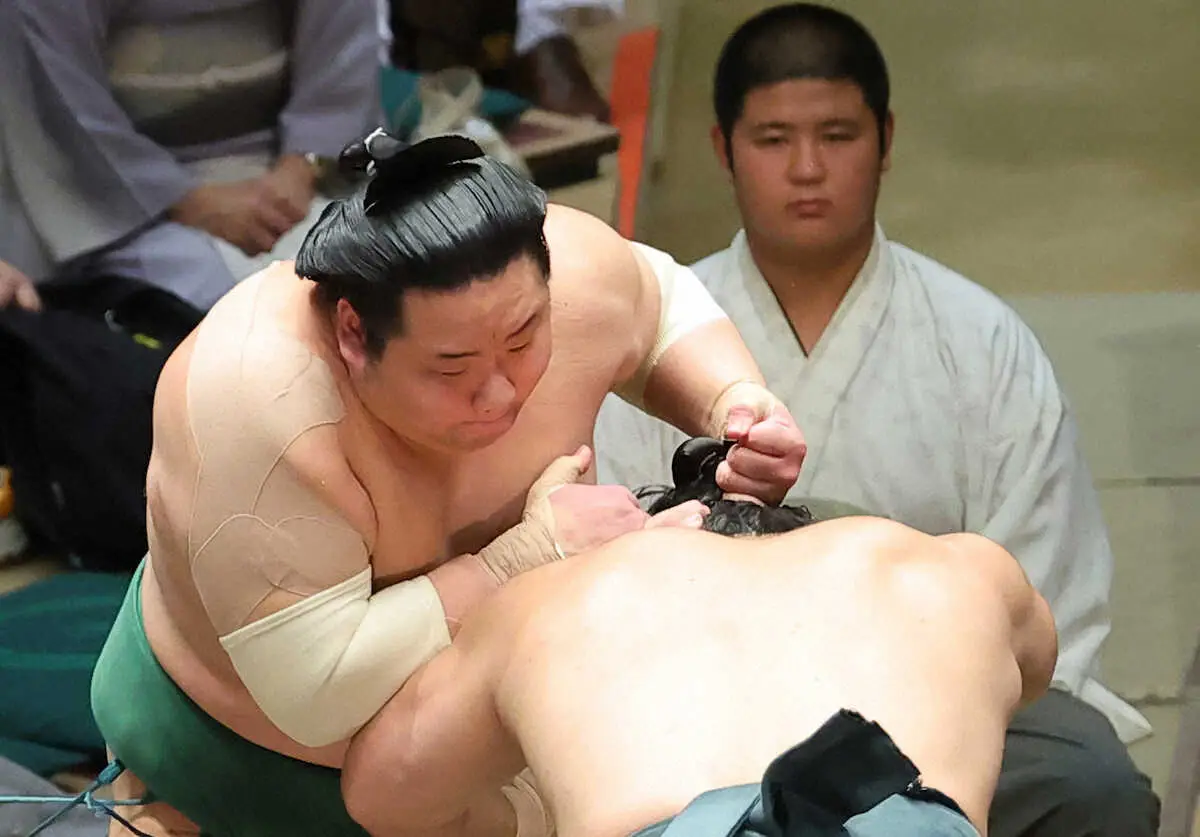 東十両8枚目の朝紅龍(25=高砂部屋)が11勝目を挙げた。東十両10枚目の東白龍(28=玉ノ井部屋)と対戦。はたき込みで敗れたかと思われたが、東白龍にまげを引っ張られており反則勝ちとなった。