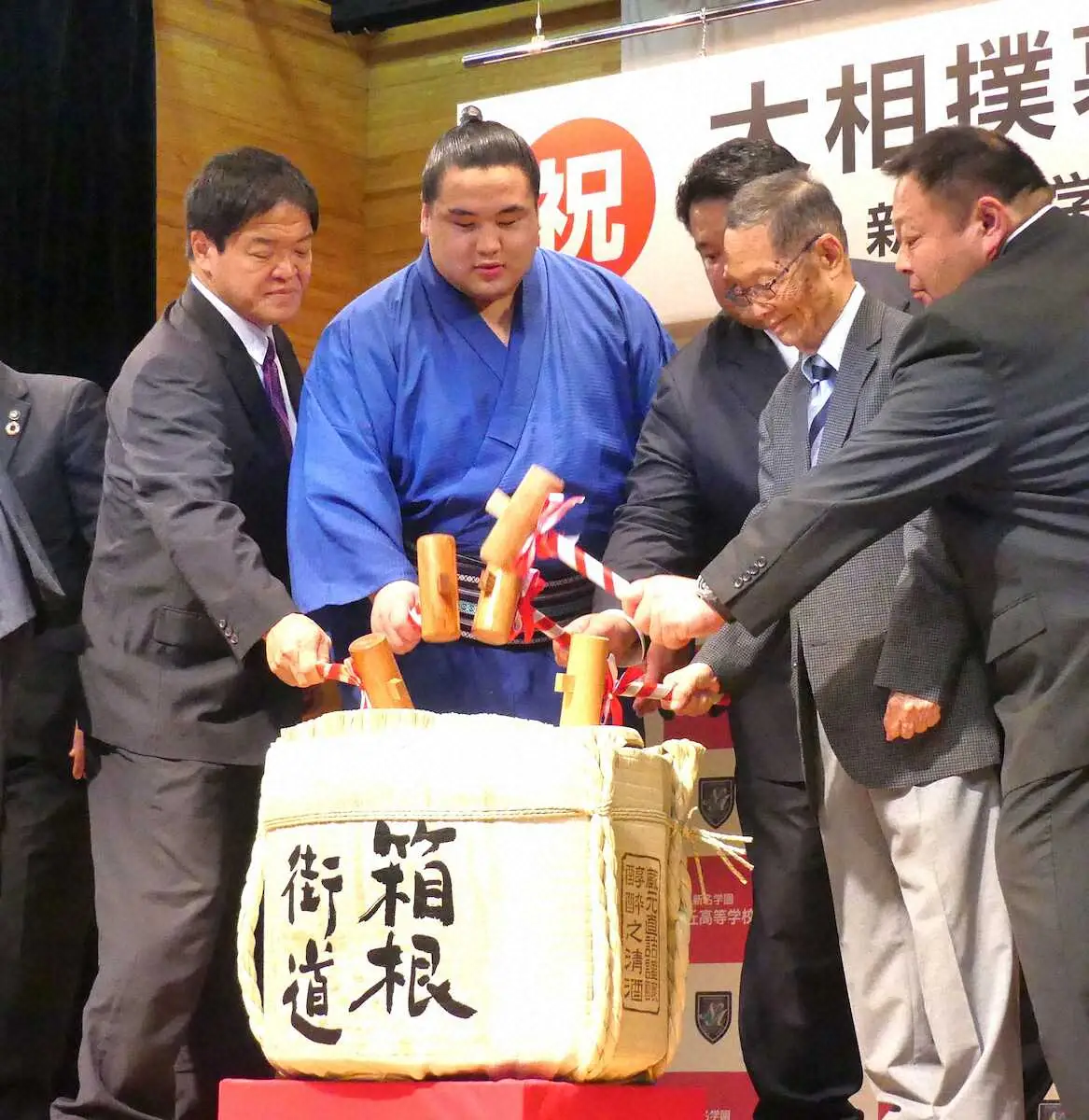 大相撲秋場所で新入幕を果たした阿武剋(24=阿武松部屋)の新入幕祝賀・激励会が25日、神奈川県小田原市にある母校の旭丘高校城内キャンパスで開かれた。