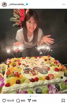 “シダマツ”志田千陽“アイドル級”ショットでフォロワー数100万人突破を報告! 超巨大ケーキも