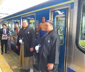 相撲漬けだった6年間は電車に乗る機会がほとんどなく、帰省する時に乗った程度。実家に帰れる「喜びの電車ですね」と表現して懐かしんだ。ラッピング車両は今後2年間走る予定。現在はちょんまげ姿のデザインだが、大銀杏(おおいちょう)を結えば大銀杏姿に、横綱に昇進すれば綱を締めた姿へと新しくする計画も。「上へ上へ目指して、この電車が進化できるように頑張ります」とさらなる出世を誓った。