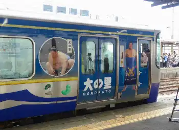 大の里が描かれた「えちごトキめき鉄道」のラッピング車両(撮影・前川 晋作)
