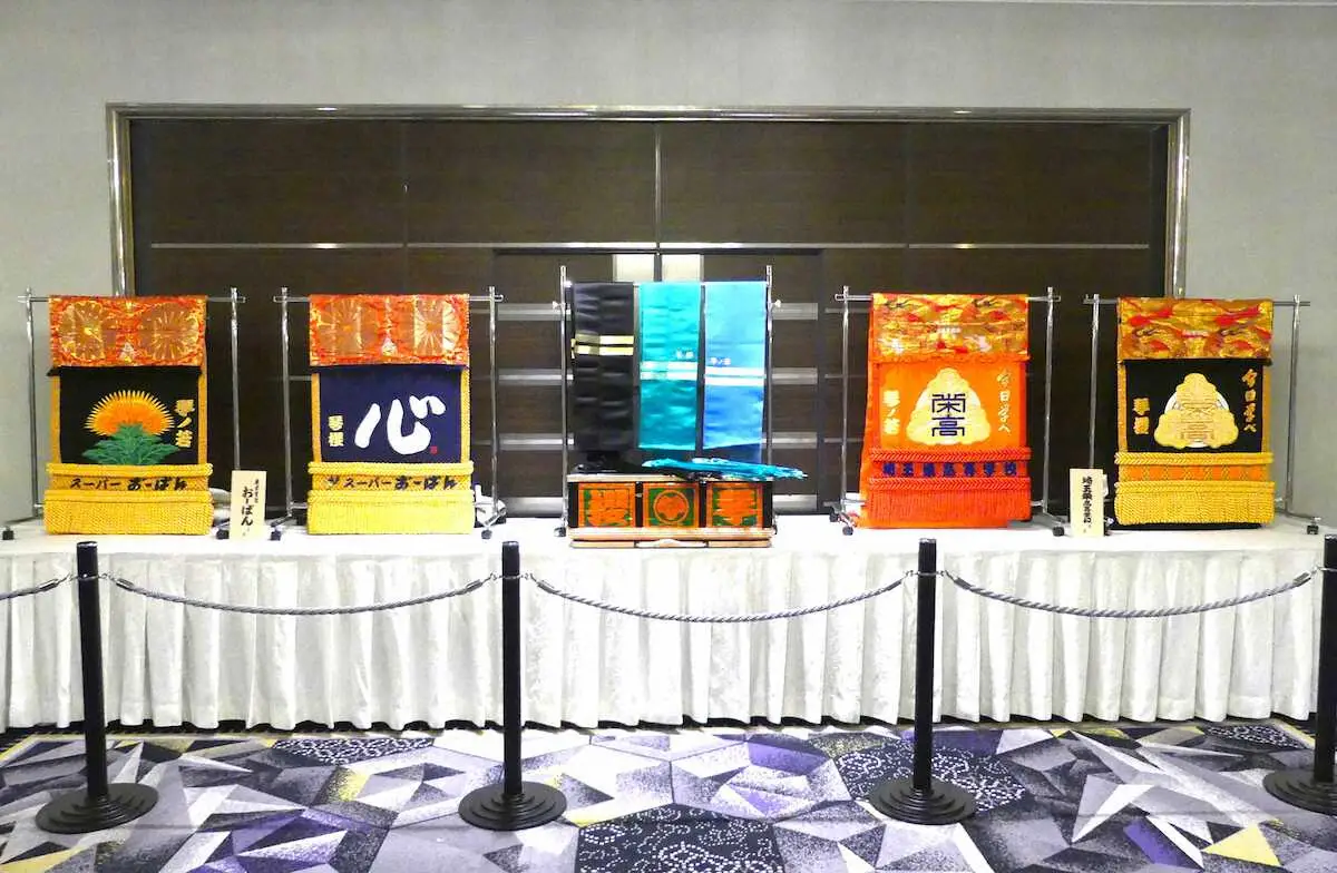 琴桜大関昇進披露宴「琴ノ若の時も相撲人生の一つ」入り口に飾られた16本の化粧まわしに込めた思い