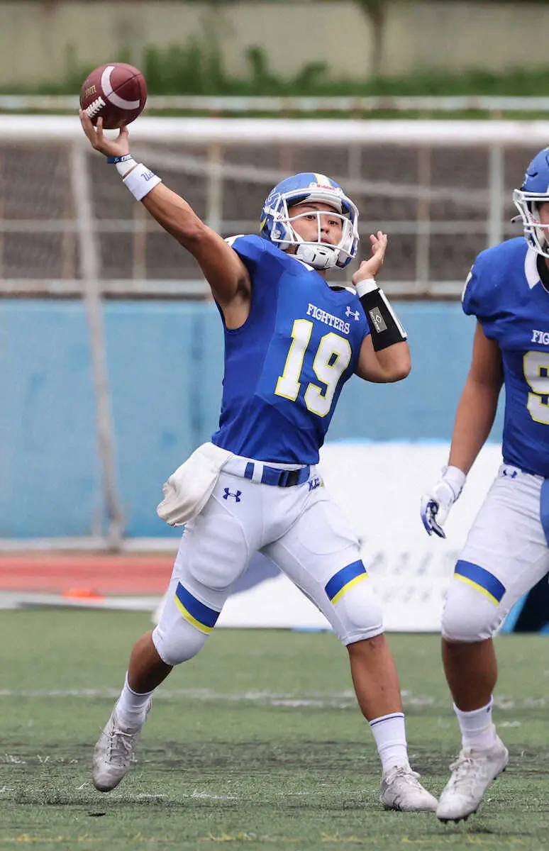 どんなアスリートでも、すべての試合で100%のパフォーマンスを実現するのは不可能。むしろ調子が悪い時にこそ、問われるのが真価だ。果たして星野太は続くシリーズから、今できるベストを尽くした。エースRB伊丹翔栄(4年)のTDで追いついた直後の第2Q0分8秒には、その伊丹へ21ヤードTDパスを通し、14ー14と同点とされた後の第2Q7分43秒には、WR小段天響(2年)へ36ヤードのTDパスをヒットさせた。