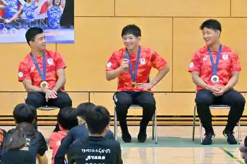【レスリング】文田、樋口、高谷大が150人の子供に技術指導…パリ五輪メダリストトリオが普及に奔走