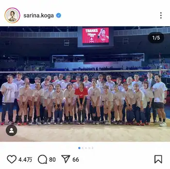 古賀さんはバレーボールの新リーグ「大同生命SVリーグ」の女子の開幕戦後に行われた引退セレモニーに登場。インスタグラムでは「大同生命SVリーグいよいよ開幕しましたね!!これから試合数も沢山ありますが、私もファンの皆様とともに 楽しみながら試合観戦したいと思います」と書き出すと、セレモニー後の集合ショットをアップ。