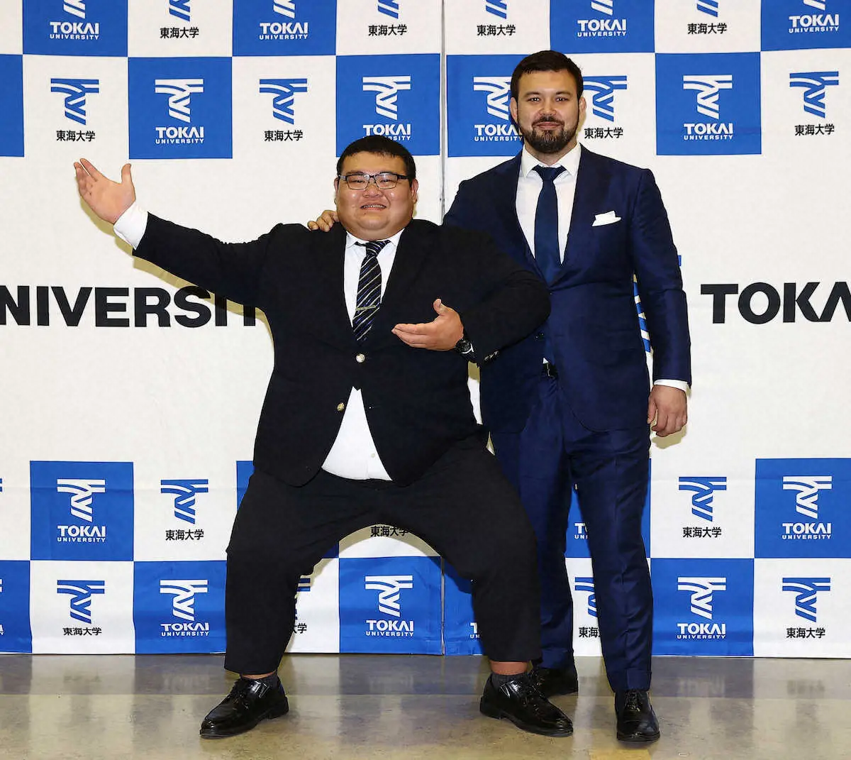 師匠となる高田川親方(元関脇・安芸乃島)は「東海大柔道部は柔道の頂点。相撲は素人だが、ポテンシャルが高い。柔道部の名を汚さないように頑張ってほしい」と期待する。11月の九州場所の新弟子検査を受け、初土俵を踏む。 (仁木 弘一)