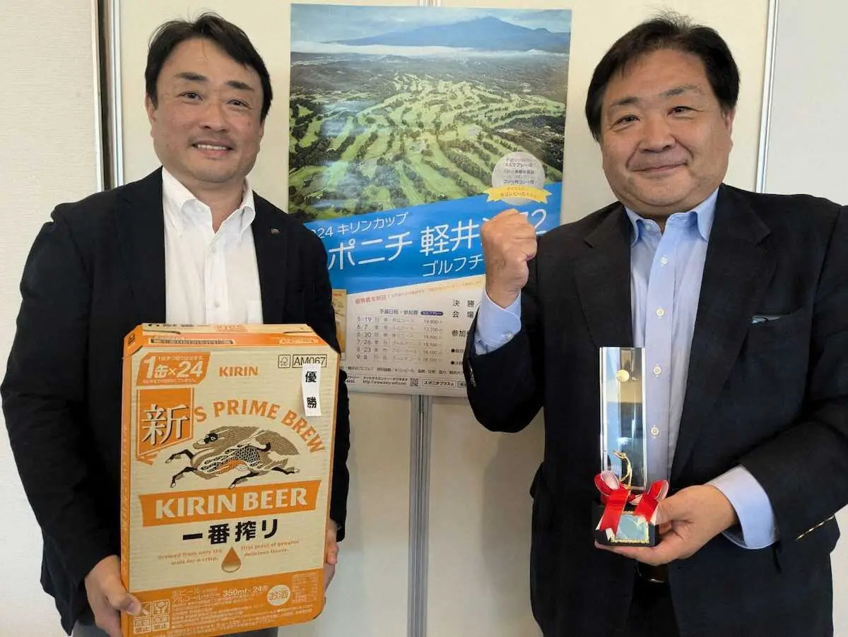 「2024キリンカップ スポニチ軽井沢72ゴルフチャレンジ」は20日、長野県の軽井沢72ゴルフ北コースで107人が参加し、決勝大会が行われた。18ホールストロークプレーの新ペリア方式で争われ、渡瀬稔さんがグロス88、ハンデ16・8、ネット71・2で総合優勝。また、グロス82、ハンデ8・4、ネット73・6の都丸美佐子さんが2年連続で女性の部1位となった。渡瀬さんには、特別協賛社キリンビールの江田雄太執行役員広域販売推進統括本部長から「キリン一番搾り」など豪華賞品が贈られた。