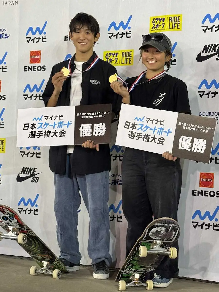 今回の大会会場は21年東京五輪でも実際に使われたパークで、日本選手権の舞台となるのは初めてだった。会場決定後に「YouTubeで東京五輪を見た」といい、五輪当時も屈指の難度で選手を苦しめたパークを体験。「このラインを通れるかなと思ったところが、実際に滑ったら通れなかった。やっぱり五輪選手は凄いなと思った」と舌を巻いたが、国内外の大会で実績がある笹岡らを抑えての優勝。15歳が大きな可能性を示したことは間違いない。