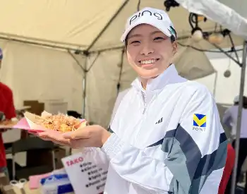 渋野日向子「日本でプレーできる喜びを噛みしめながら」たこ焼きを手にスマイル