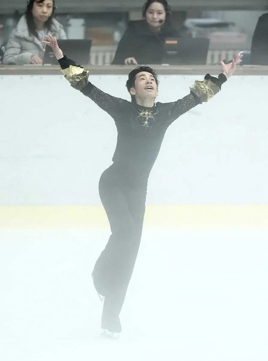 2位に75・32点の杉山匠海(岡山大)、3位に74・65点の三宅星南(関空スケート)が入った。