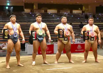 今大会はベスト8以上に入れば幕下最下位格付け出し、ベスト16なら三段目最下位格付け出しの資格がそれぞれ与えられる。4年生では、既に幕下付け出し資格を得ていた花岡真生と五島雅治に加えてブフチョローン(日体大)、江連春樹(東洋大)、川上竜昌(日大)、浦山秀誠(近大)が新たに同資格を獲得。また、4年生ではスフバット(専修大)、里海斗(日大)、ミャンガンバヤル(東洋大)、佐藤架月(法政大)、谷内勝哉(東農大)の5人が三段目付け出し資格を獲得した。