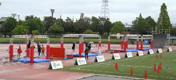 近代五種の全日本選手権が2日、愛知県安城市で始まり、国内初実施を3日に控えた新種目、障害物レースの公開練習が行われた。2028年ロサンゼルス五輪では、馬術に代わり障害物レースが採用される。