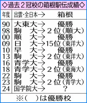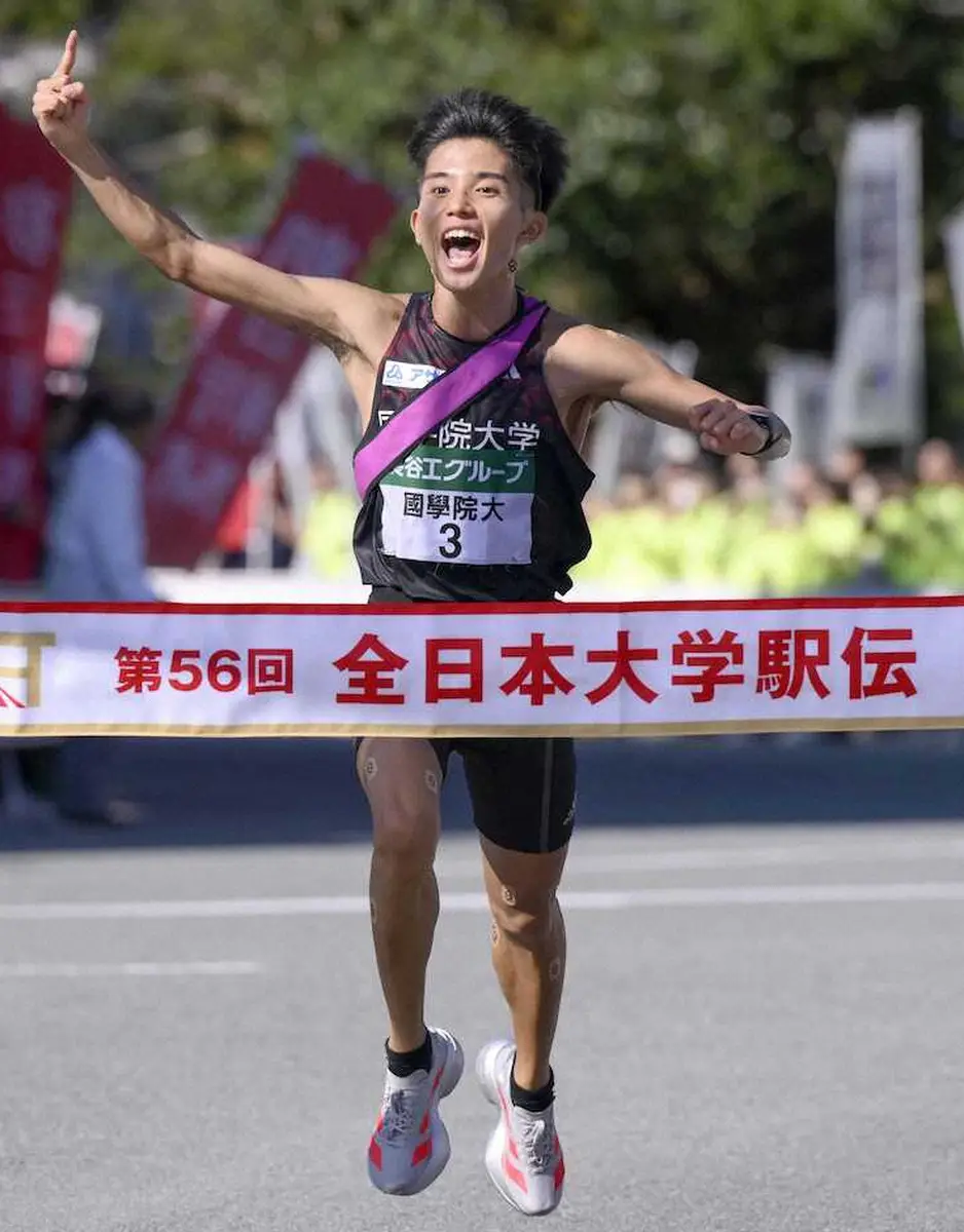 国学院大が5時間9分56秒で初優勝を飾り、10月の出雲駅伝との2冠を達成した。5区の野中恒亨(2年)が区間賞、6区の山本歩夢(4年)が区間新の活躍で青学大との首位争いに持ち込み、2位で受けた最終8区の上原琉翔(3年)が逆転した。7区を走った初マラソン日本記録保持者の絶対エース・平林清澄(4年)だけに頼らない、分厚い選手層を見せつけた。来年1月2、3日の箱根駅伝で、史上6校目となる学生駅伝3冠に挑む。