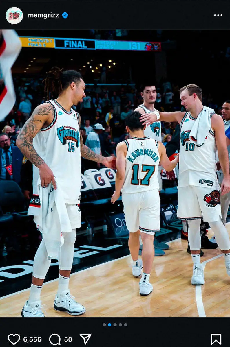 グリズリーズ・河村勇輝(AP) Photo by AP グリズリーズ NBA初得点の河村勇輝へ試合後に最高のサプライズプレゼント… ギャラリーで見る この記事のフォト 2024年11月07日の画像一覧 もっと見る 2024年11月07日の画像をもっと見る