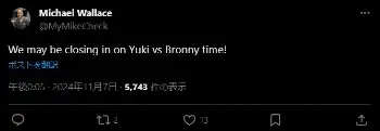 チームが大量リードした最終クオーター。レイカーズは残り4分35秒で主力をベンチに下げて、ブロニーを含めた主力選手を出場させた。するとグリズリーズ公式メディアである「グラインド・シティ・メディア」のシニアエディターでアナリストのマイケル・ウォレス氏は自身のX(旧ツイッター)で「ユウキVSブロニーの時間が近づいているかもしれない」と投稿。