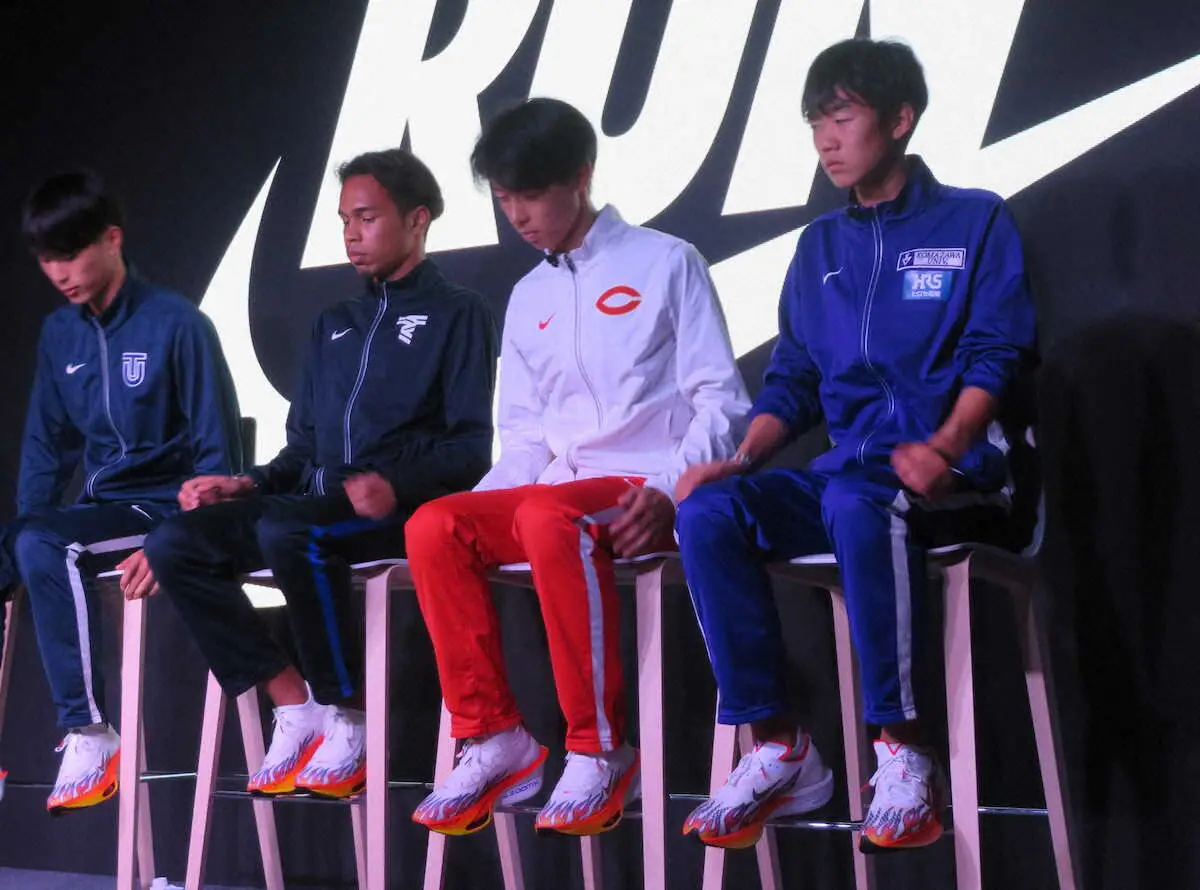 来年1月2、3日の箱根駅伝で2年ぶりの優勝を狙う駒大の桑田駿介(1年)ら大学駅伝ランナー4人が6日、都内で行われたナイキの新商品発表会に出席。「ヴェイパーフライ3」を愛用しているという桑田は、炎をあしらったデザインの新シューズに「特に今年は今までにない奇抜なデザイン。やる気を出してくれる」と気に入った様子だった。