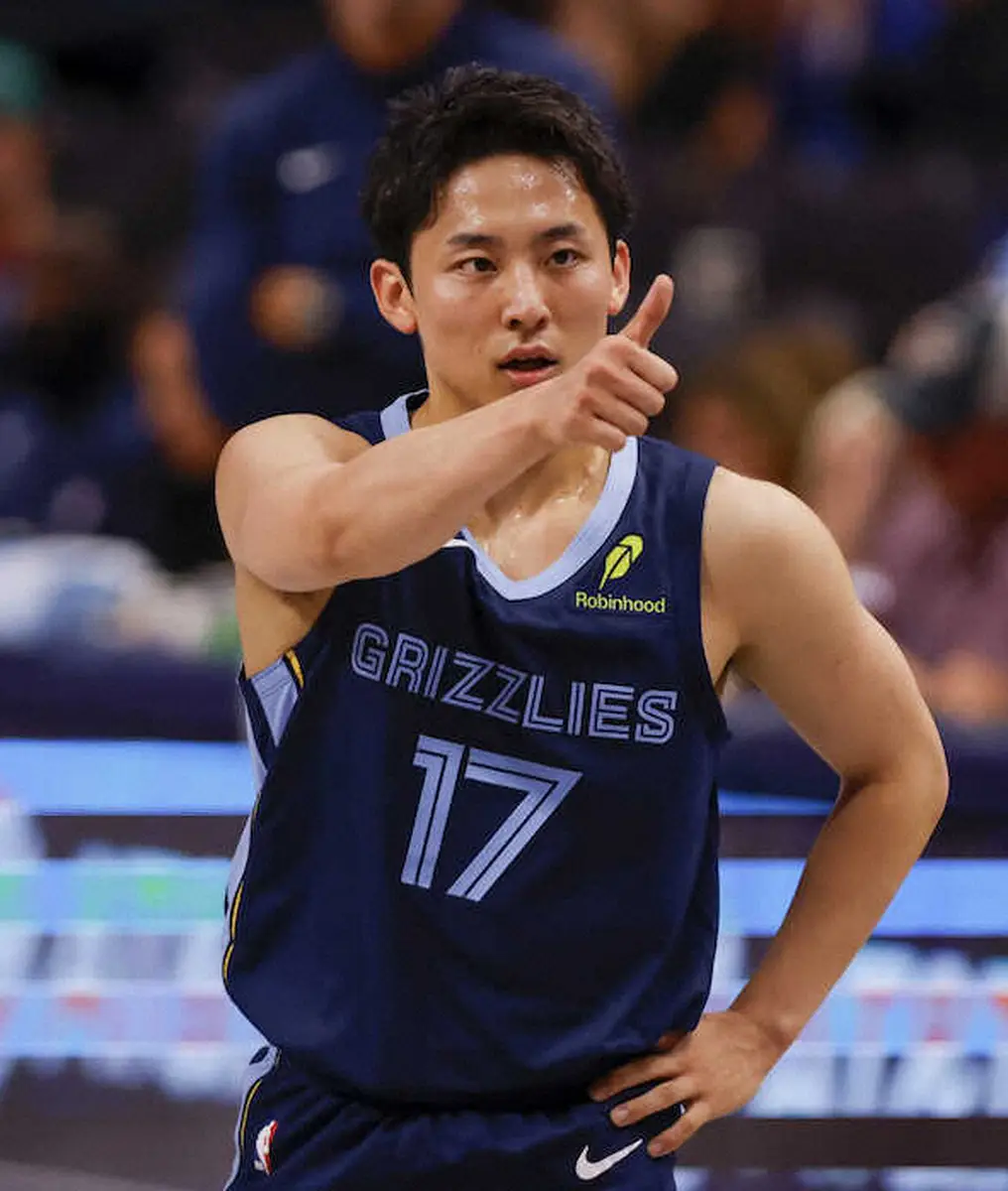 NBA初FGとなる3Pシュートを決めたグリズリーズ・河村勇輝(AP)