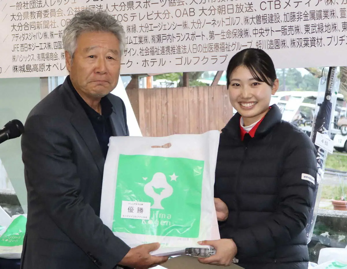 地元・大分をはじめ全国各地から149人が参加し、前半9ホールのネット競技(ダブルペリア方式)で争われ、伊藤進選手がネット33・0(グロス45、ハンデ12・0)で優勝した。ジュニアの部は男子が池田洸祐(大分高2年)が1アンダー、71で首位に並んだ伊東海太(大分高1年)とのプレーオフを制して初優勝。同女子は平畑佳子(大分・柳ケ浦高3年)が4アンダー、68の好スコアで昨年に続く連覇を果たした。