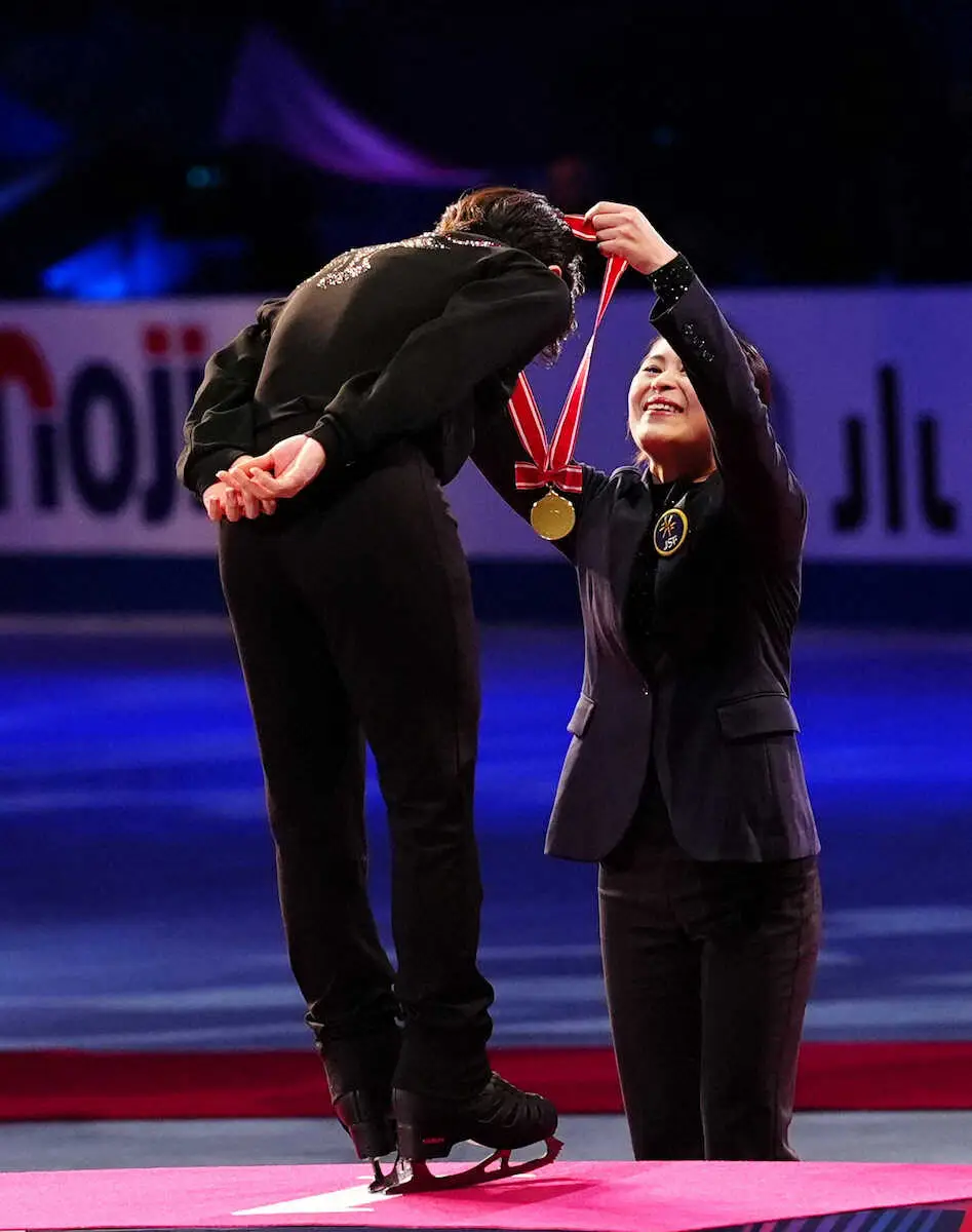 日本フィギュア界を彩った名スケーターの登場にSNSのファンも興奮。「さっとん立派になって」「これは観客も選手も嬉しいよねー」「さっとんからのメダル授与とか激アツ大会すぎる」「さっとんがメダルをかける方の立場になるとは。感慨深い」などの声が上がっていた。