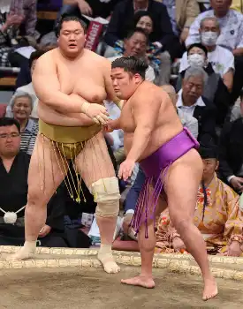 また、優勝経験のある平幕勢、尊富士は東十両2枚目・輝を寄り切り2勝目を挙げた。若隆景は東前頭4枚目・美ノ海を押し出して3連勝。阿炎は東関脇・霧島を勢いよく押し出して2勝1敗とし、霧島は3敗に後退した。