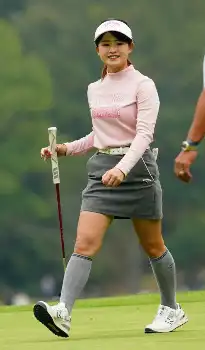 バーディーラッシュの始まりは2番パー4だ。グリーン右手前から40ヤードのアプローチを直接カップに放り込みチップインバーディー。手を上げて大歓声に応えると愛らしい笑みがはじけた。後半も10番で8メートルのバーディーパットを沈めるなどパッティングが好調。「コロンぐらいのタッチで入るように」と少しイメージを変えたことが奏功した。