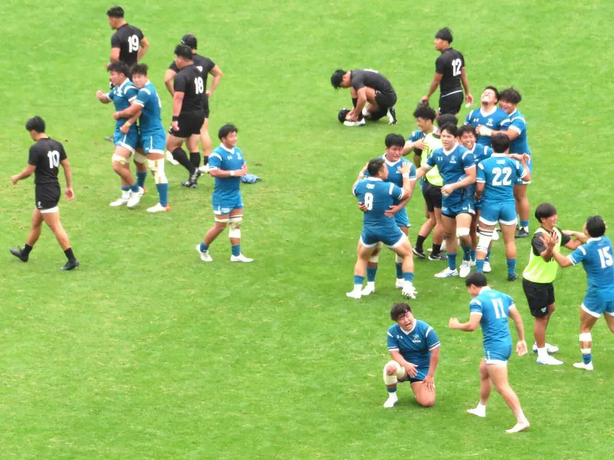 しかし、10分過ぎから近大にスクラムで仕掛けられるとペナルティーを重ね、プロップ・森仁之輔(3年)が「反則の繰り返し」でシンビンを取られてしまう。19分にスクラムから展開されてトライを許すと、38分にラインアウトから相手フッカーに右隅に飛び込まれて同点に。ゴールを決められて26―28と逆転を許した。