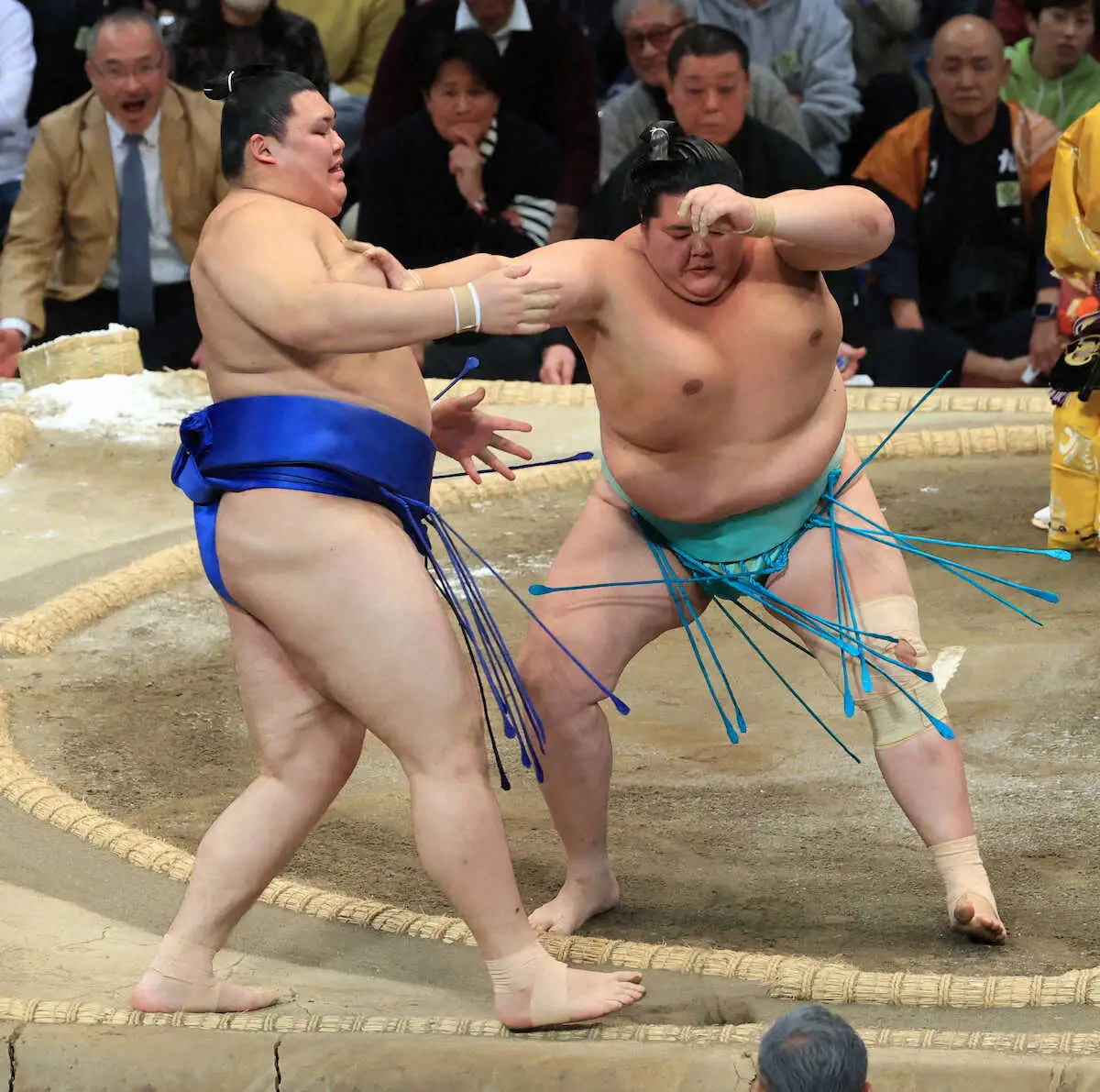 琴桜は大の里に右を入れられ、前に出られたが、左上手投げで態勢を崩した。力強い相撲だった。ただ、この日は新大関が本来の状態ではなかったことに助けられた面もある。