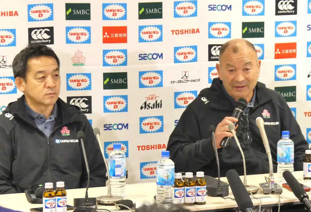 ラグビー日本代表が26日、欧州遠征を終えて羽田空港に帰国し、エディー・ジョーンズ・ヘッドコーチ(HC)と永友洋司チームディレクターが会見に出席した。