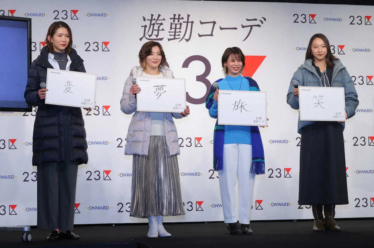 フォトセッションで笑顔を見せる(左から)古賀紗理那さん、角田夏実、高木菜那さん、畠山愛理さん(撮影・松永 柊斗) Photo by スポニチ 【柔道】角田夏実のクリスマスの予定は?「デートは行きたかったが…仕事を… ギャラリーで見る この記事のフォト 2024年11月28日の画像一覧 もっと見る 2024年11月28日の画像をもっと見る