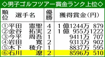 現在6位 石川遼「邪念なし」で狙う15年ぶり逆転賞金王