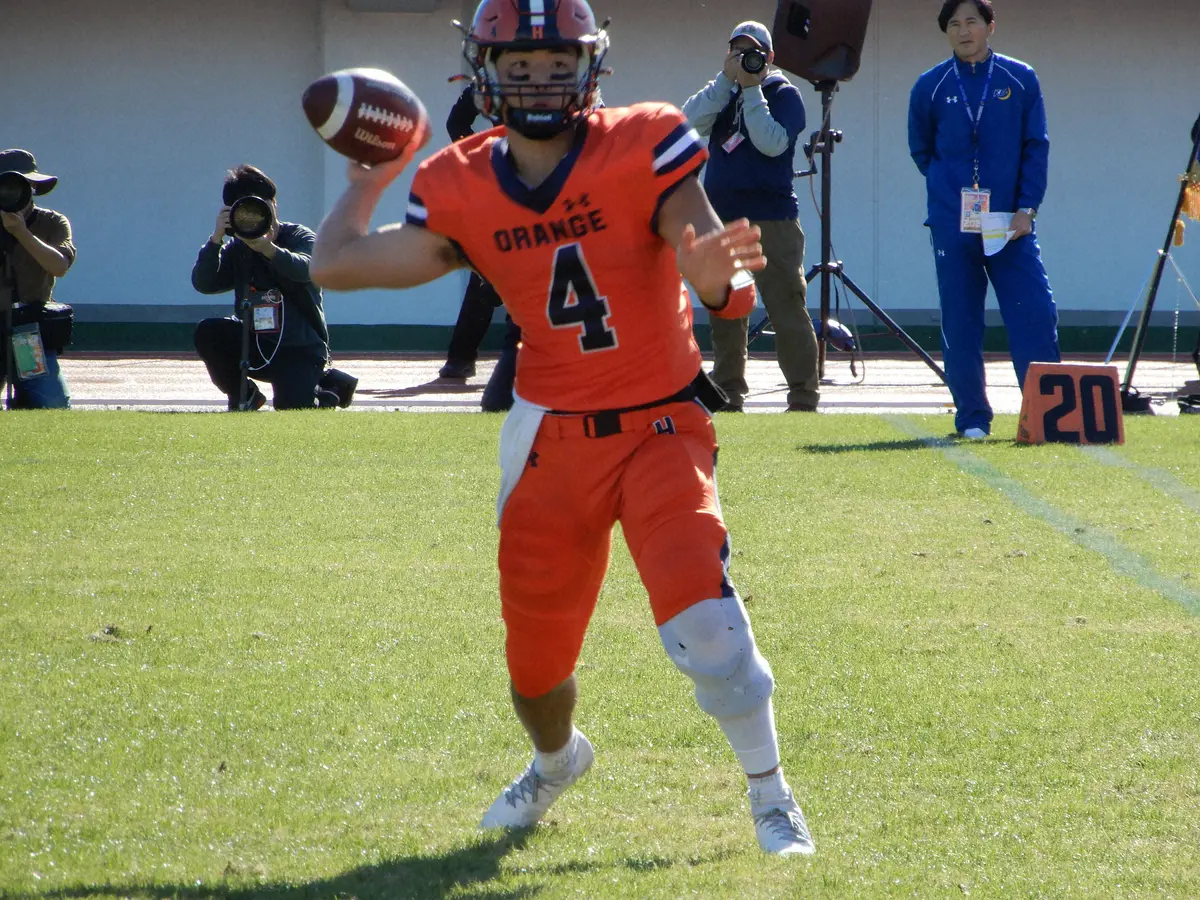 前半、それぞれ1TD、1FGを奪い合い、10―10で折り返した第4Q51秒、QB谷口雄仁(4年)がTDパスを決め勝ち越し。試合終了間際に追いつかれたものの、タイブレークでFGを決め、無得点の関学大を破った。